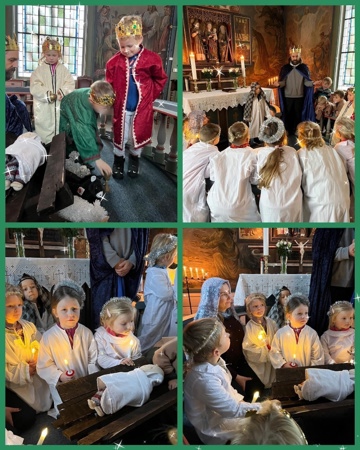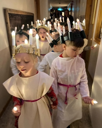 Luciafrokost: Rundt den 13 desember, som er luciadagen, inviterer vi føresette til frokost i barnehagen. Då serverer vi lussekattar og godt pålegg. Barna har på seg kvite kapper, går i luciatog og førskulebarna har lys i håret.