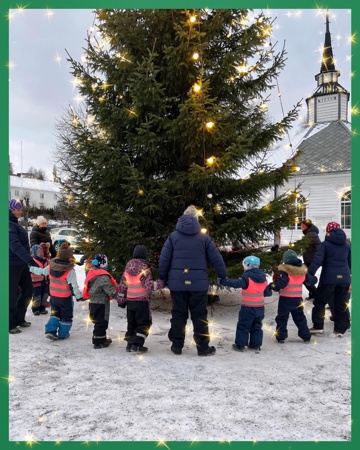 Vi lagar mellom anna julegåver, pyntar juletre, syng gamle og nye julesonga, bakar julemanna og pepperkaker.