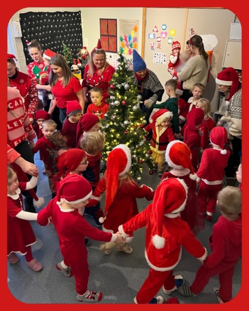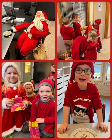 Nissefest: Kvart år har vi ein nissefest for barna og personalet på dagtid. Den som vil kan kle seg ut som nissar eller kle seg i raudt. Vi et graut og har gang rundt juletreet. Dei vaksne har som oftast ei framsyning for barna.