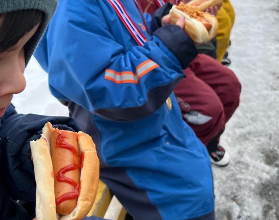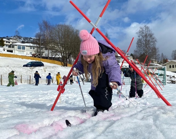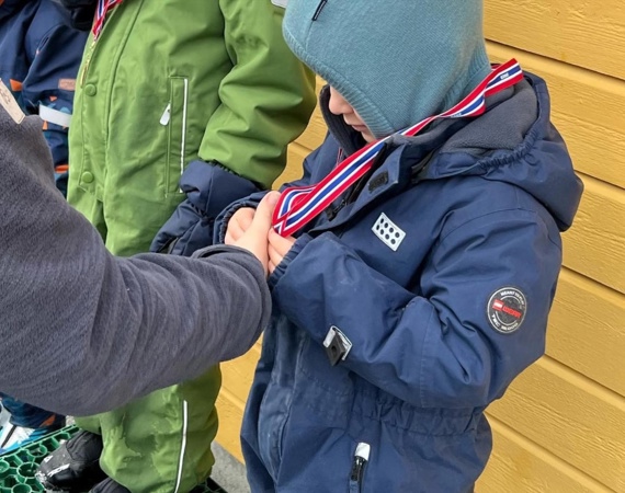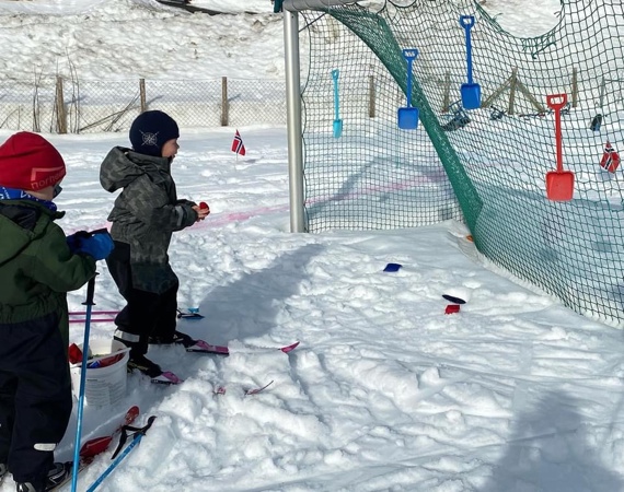 Denne dagen lager vi løype på leikeplassen der barna kan gå runde på runde på ski. Dei får prøve #hinderløype", "skiskyting med erteposer". Dersom snøforholda ligg til rette for det, lagar vi skihopp for dei som vil prøve det. Dei yngste barna er med og ser på, eller aker i barnehagen.